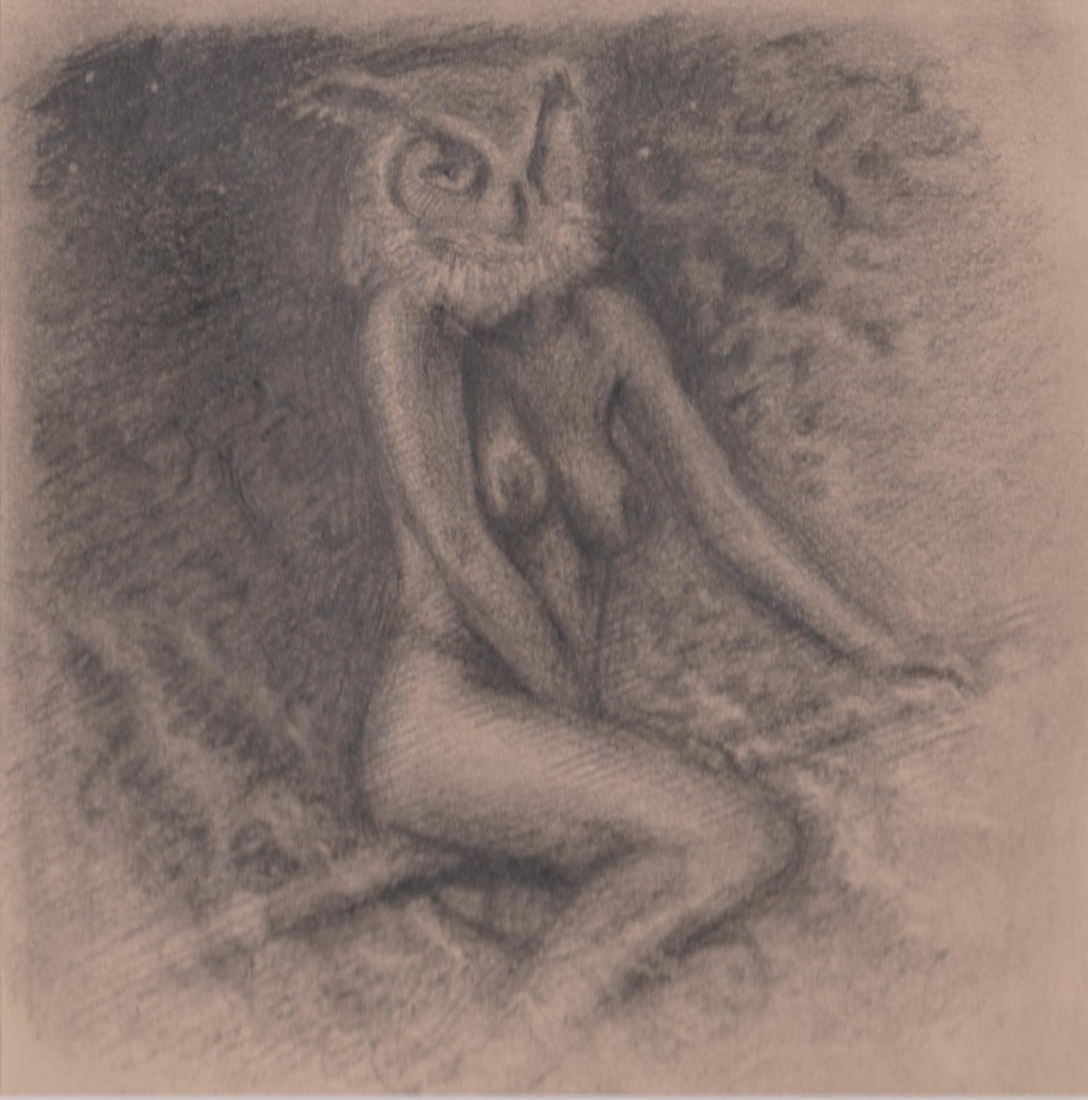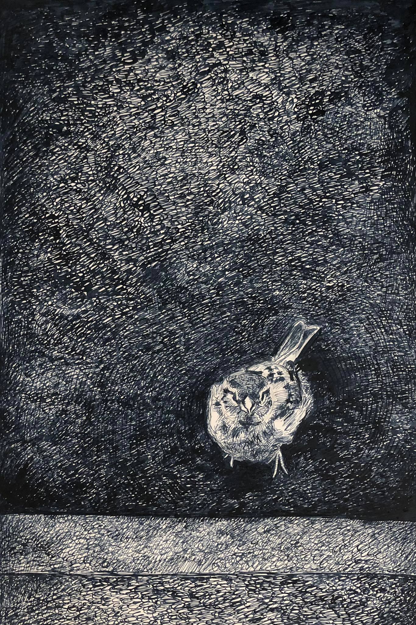 Nachteule, STAUDINGER, 2024, Zeichnung, Bleistift auf Papier, 13,5x13,5