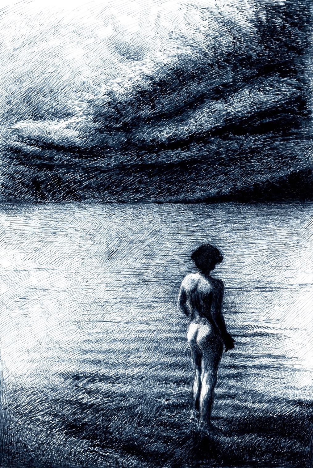Der See, STAUDINGER, 2021, Zeichnung, Tusche auf Papier, 42x30