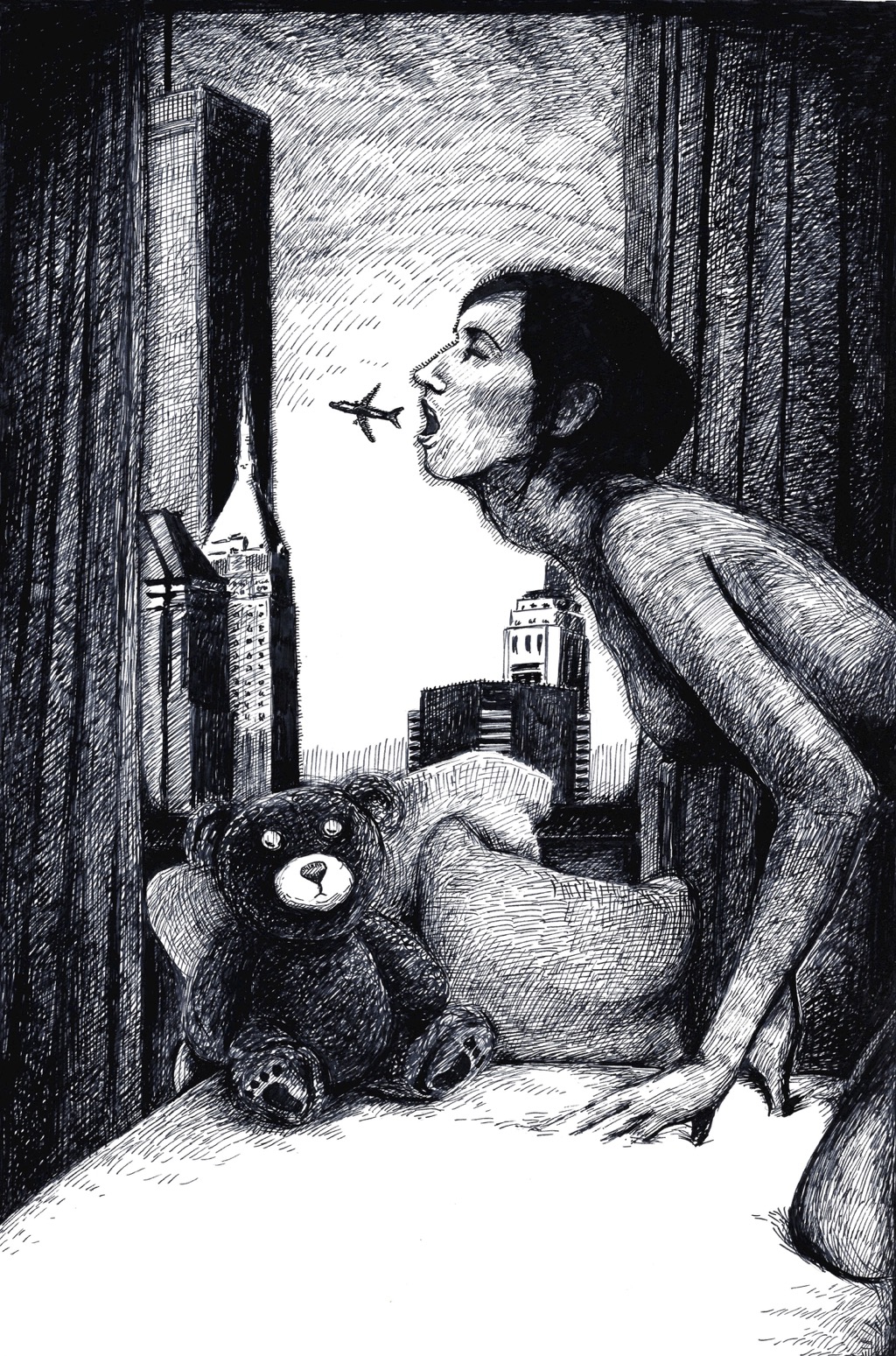 Übärflieger, STAUDINGER, 2022, Zeichnung, Tusche auf Papier, 42x30