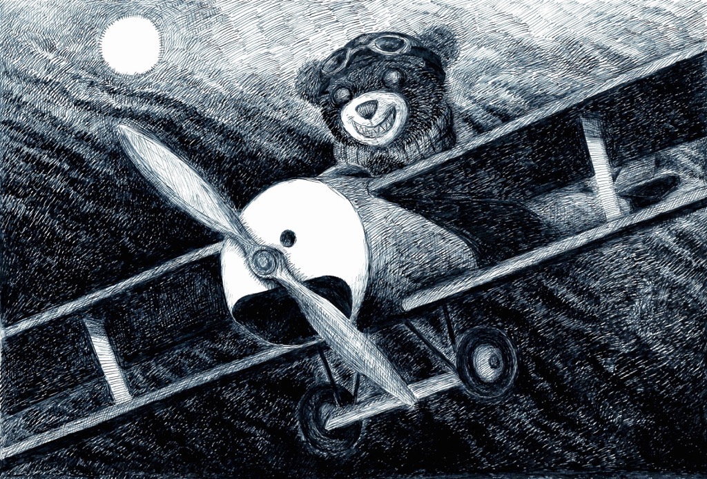 Robesbär, STAUDINGER, 2022, Zeichnung, Tusche auf Papier, 42x30
