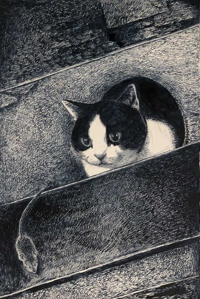 Der frühe Vogel, STAUDINGER, 2022, Zeichnung, Tusche auf Papier, 42x30