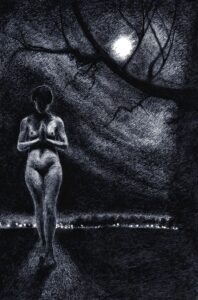 Banshee, STAUDINGER, 2023, Zeichnung, Tusche auf Papier, 42x30
